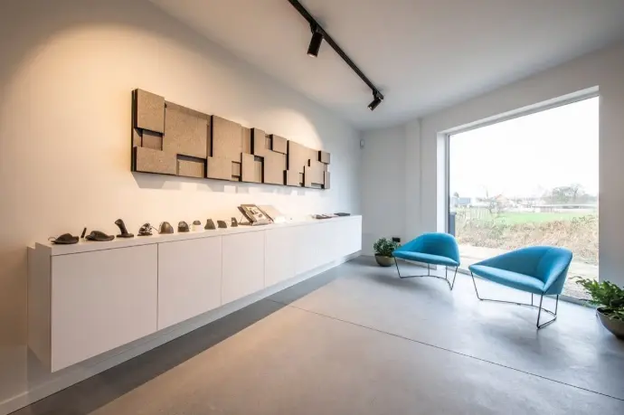 Met onze achtergrond in design en ergonomie combineren we persoonlijk advies met een eigen showroom in Herk-de-Stad, op slechts 15 minuten van Hasselt. Hier nemen we de tijd om te luisteren, geven je advies op maat en bekijken samen met jou hoe jouw werkplek of volledige werkomgeving comfortabeler, gezonder en efficiënter kan worden ingericht.