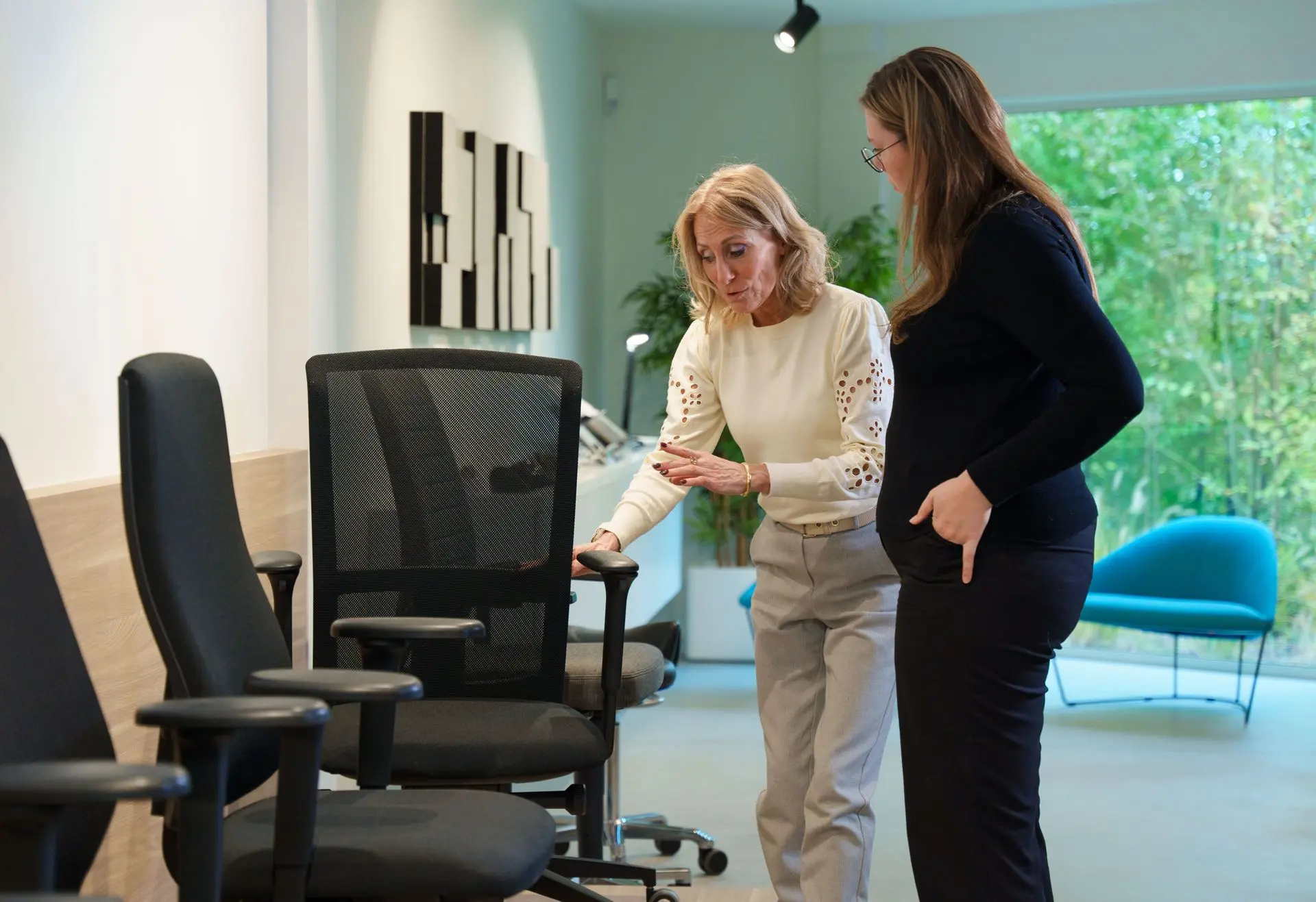In onze showroom kan je de ergonomische bureaustoelen, zit-sta tafels en akoestische oplossingen zelf ontdekken en uitproberen. Onze experts begeleiden je persoonlijk en geven inzicht in wat echt bij jouw situatie past. Met de juiste aanpassingen maak je een groot verschil – voor je lichaam én je werkdag.