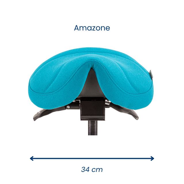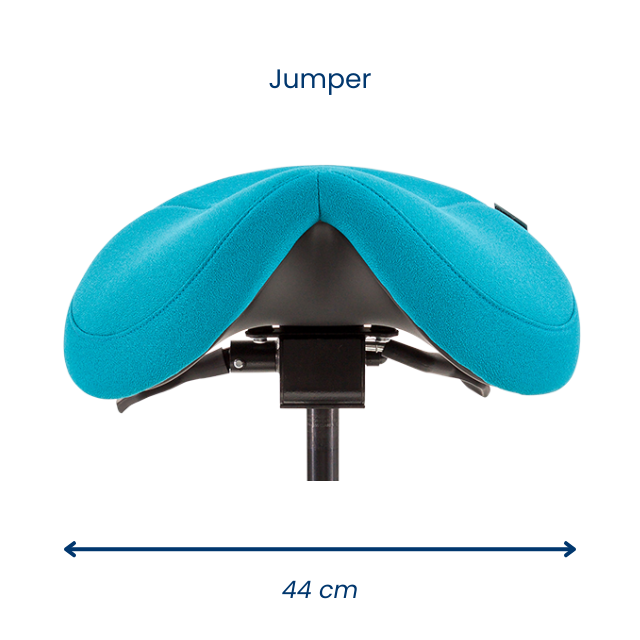 The difference is in the width of the seat. The Jumper has a wider saddle shape (44 cm) and offers more stability and seating surface. The Amazone is narrower (34 cm) and allows more freedom of movement. The choice depends on your posture and type of work.